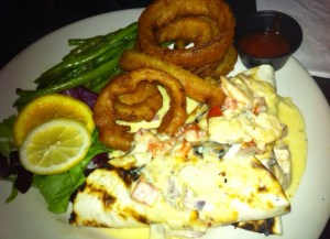 We went to a new place for us, after getting shut out at Bonefish Grille. It’s a place called the Black Knight Tavern and Grille. We’ve been getting mailers from them for a couple of years, just never got around to trying them. Turns out the food is pretty good. Maybe not the greatest cuisine on the planet, but it was serviceable and filling. It also had the advantage of being pretty nicely priced. They offer a couples special. You get an appetizer to share, a choice of two selected entrees, and two small desserts. All for around $25. So, SPW (lover of fine crustaceans!) and I agreed on a crab dip appetizer that was served with some yummy warm bread. For her entrée, SPW went with a grilled swordfish, served with fries and green beans. I opted for a crab quesadilla topped with shrimp, served with onion rings and green beans. Like I mentioned earlier, the food is not haute cuisine. It’s basically pub grub, kicked up a notch. My quesadilla was fresh, loaded with plenty of crab meat. The rings were very crispy, and the only drawback with the beans was that they were a little oily.