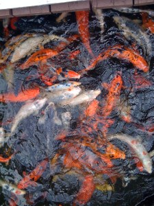The Embassy Suites staff collected our bags and we went and had breakfast. They have an excellent selection, complete with omelet station. After breakfast, I went out to feed the koi.